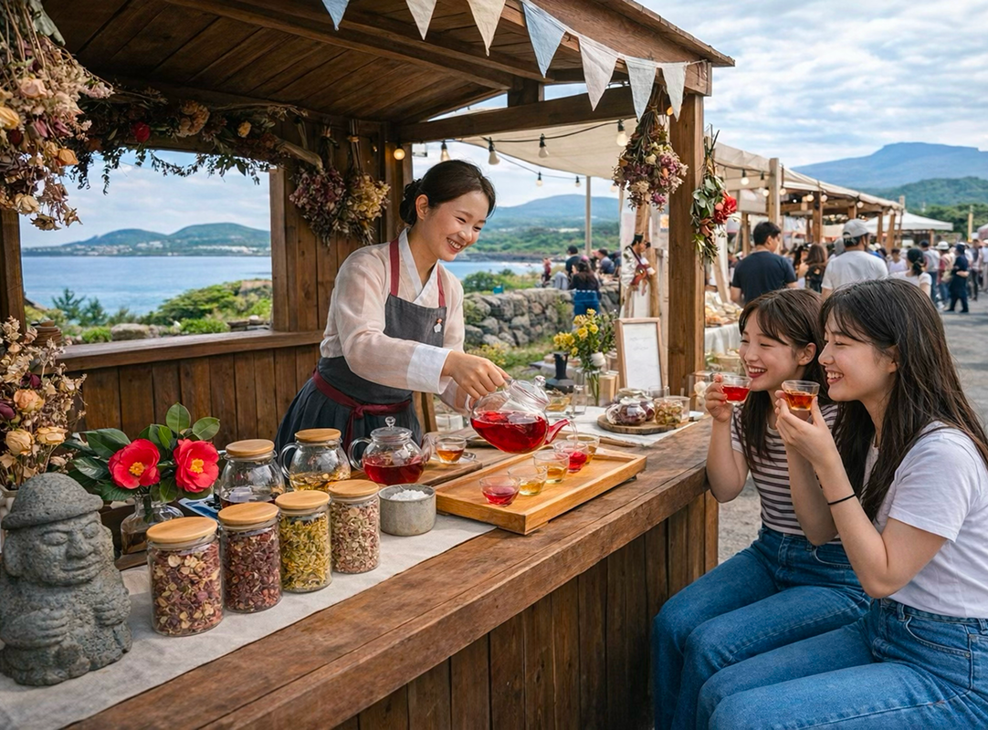 제주의 자연을 담은 꽃차를 직접 맛보며 향긋한 제주만의 여유를 느껴보는 시간입니다. 은은한 꽃향기와 부드러운 풍미가 어우러진 다양한 꽃차를 시음하며 제주가 가진 따뜻한 감성과 힐링의 매력을 편안하게 즐겨보세요.