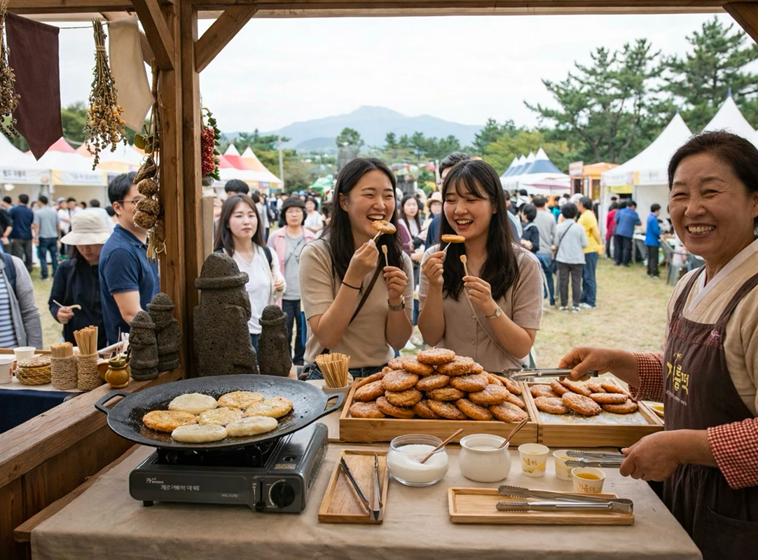 제주 지름떡(기름떡)은 찹쌀가루를 반죽해 별 모양으로 빚어 기름에 지진 후 설탕을 뿌려 먹는 제주의 달콤한 전통 간식입니다. 겉은 바삭하고 속은 쫀득한 식감이 일품인 제주의 옛 맛을 직접 경험해 보세요.
